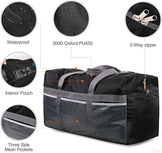 Foldable Travel Bag, Large Sports Bag, 75L/96L/100L, Lightweight Waterproof Tote Bag