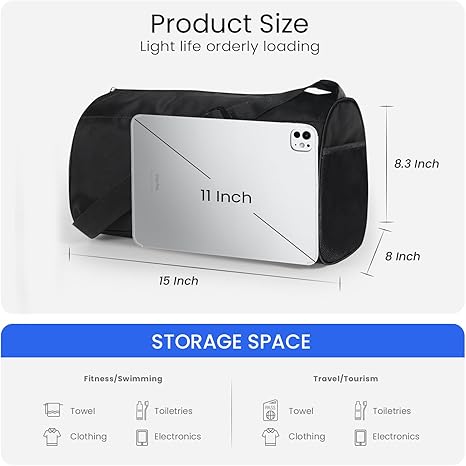 Compact Airplane-Approved Carry On Duffel:15"x8"x8.3" lightweight travel duffel bag fits under airplane seats & gym lockers; holds clothes, shoes & toiletries; TSA-compliant for stress-free short trips