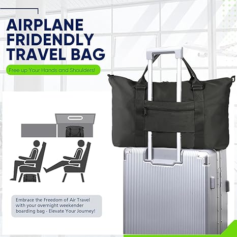 Travel Duffle Bag, Weekender Travel Bag Men Small Gym Bag for Women, Hospital Bag for Labor and Delivery, Overnight Bag Luggage Bag with Trolley Sleeve, Airplane Travel Essentials for Flying(Black)