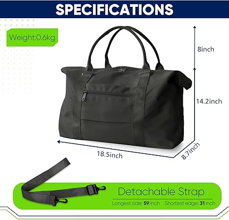 - 【Airplane Friendly Travel Bag】This women travel weekend bag offers multiple functions to meet your travel essentials and is perfect for taking on board when traveling by air. Large duffel bag measures 27x55x18 cm/10.63x21.65x7.09 inches and weighs 1.3 lbs. It can be used as a hand luggage bags for travel , backpack or shoulder bag, allowing you to switch freely on different occasions and easily cope with various travel scenarios.